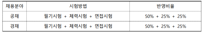 필기시험의 경우 공채와 경채의 시험과목이 달라지며 경채의 경우에도 채용분야에 따라서 시험과목이 달라지게 됩니다.